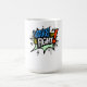 The design uses classic comic book aesthetics, featuring the bold text exploding from a dynamic speech bubble. The color palette is high-energy, dominated by a vibrant yellow background contrasting with blue and white text and a large red exclamation mark. Details like Halftone dot shading and rough lines enhance the Pop Art / retro comic book feel. This piece is perfect for fighters, fitness enthusiasts, entrepreneurs, and anyone who needs a bold, in-your-face dose of motivation to tackle their goals.