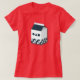 T - Shirt der Frauen mit einem Karton Milch aus dem Spiel. mit einem Kreis, einem Dreieck und einem quadratischen Muster