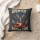 The design features a highly detailed, menacing dragon head with horns and glowing orange eyes. Flames and smoke are bursting from its mouth, emphasizing the "SUPER FIRE" tagline below. The overall aesthetic is dark, aggressive, and perfectly suited for heavy metal, fantasy gaming (like D&D), or gothic/streetwear fans who appreciate high-quality creature illustration. The bold typography of "DRAGON" above the creature completes the powerful composition.