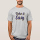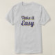 "Take it Easy" ist ein nettes Textdesign, das eine gute Einstellung zu den Leuten in Ihrer Umgebung bringen wird. Machen Sie Ihr Leben einfach mit stilvollem Design. Dieses Design ist auch ein ausgezeichnetes Geschenk für Ihre Freunde und Familie, besonders in schwierigen Zeiten in ihrem Leben.