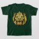 Löwenkopf in goldener Farbe. Architektonisches Bild mit verbesserten Winkeln und Schatten.