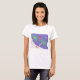 Dieser T - Shirt ist mit einer farbenfrohen Inselszene mit Palmen, einem blauen Ozean und einem Segelboot gestaltet.