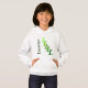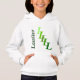 Nachname im Jägergrün läuft rechts vom Shirt. Rechts befinden sich große Buchstaben der ersten Hauptstadt des Namens in verschiedenen Farbtönen von Limon bis dunkelgrün. Personalisieren Sie mit Ihrem Namen und Initial.