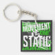 The design features a layered, high-energy composition. The word "MOVEMENT" is rendered in a distressed white font with energetic circular scribbles layered over it. This sits atop a mirrored, vibrant lime green block font. The central phrase "in the" is placed in a jagged, black-and-white splatter badge, while the word "STATIC" anchors the bottom in massive, weathered white block letters.