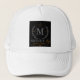 Celebrate prestige and personal legacy with this elegant horizontal design, sized precisely at 14 × 7 cm. Set against a deep black background, the composition features a bold silver monogram M enclosed in a square frame, crowned with a minimalist gold emblem. A silver laurel wreath encircles the monogram, flanked by two gold stars that symbolize excellence and achievement.