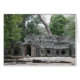 Ta Prohm Tempel in Angkor, Kambodscha - Im Gegensatz zu den meisten angkorianischen Tempeln wurde Ta Prohm in fast demselben Zustand links, in dem er gefunden wurde: Die fotogene und atmosphärische Kombination von Bäumen aus den Ruinen und der Dschungelumgebung hat ihn zu einem der beliebtesten Tempel Angkors mit Besuchern gemacht. Vollständig anpassbare Grußkarte Kambodschas.