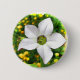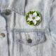 Dieser Knopf besticht durch eine hübsche Blume aus weißem, blühendem Tabak mit sehr hellvioletten Farbtönen und einer hellgrünen Mitte. Es ist Set gegen ein Feld von goldenen Calendulas und grünem Blattwerk.