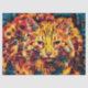 Hippie tabby Kitty Katzenkatze decoupage Gewebe Papier. Boho gelb rot blau bunt, psychedelisch. Cooles, modernes, trendiges, fröhliches böhmisches Design. Foto Kunstgeschenk-Verpackung. Bildrecht Marg Seregelyi Fotografie.