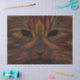 Tabby Cat Design Orange, Rost, Kupfer Kunst nah.Schwarzer Hintergrund Trendy, zeitgenössisches, elegantes, modernes, cooles handwerkliches Papiertaschentuch. Für Katzenliebhaber. Einzigartiges Geschenkverpackungsdesign. Bildrecht Marg Seregelyi Fotografie.