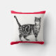 Tabby Katze Frohe Weihnachten Rote Katzen Kissen. Schwarz und Weiß Tabby Kat Weihnachtskissen mit einem Weihnachtsdesign auf der einen Seite und einem Tabby Cat Design auf der anderen Seite, sodass das Kissen das ganze Jahr über benutzt werden kann! Ein niedliches Weihnachtsgeschenk für jeden Katzenliebhaber. Entworfen und gezeichnet aus einer meiner Originalzeichnungen.