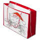Tabby cat in der Weihnachtsmannmütze Weihnachten Große Geschenktüte