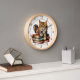 Das Bild auf dieser niedlichen Uhr ist ein braunes, gestreiftes Kätzchen, das auf einem Stapel Vintager Bücher liegt. Die goldbraunen Zahlen rund um den Umkreis machen die Uhr leicht lesbar.