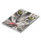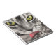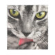 Dieses Design zeichnet sich durch ein hochauflösendes Bild einer Katze aus, mit grauem und schwarzem Fell und schönen grünen Augen. Sie leckt zuversichtlich ihre eigene Pfote, um sich selbst zu pflegen.