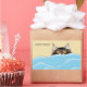Tabby Katze pinkelt über Decken, um den Menschen zu sagen, dass sie wach sind!