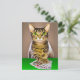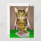 Postkarte in einem Portrait einer braunen und bräunlichen Katze, die Karten spielt - und gewinnt