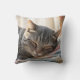 Tabby Cat Schlafen auf altes Häuschen Kissen