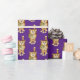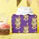Niedliche Tabbierkatze mit grünem Bogen auf lila Hintergrund. Die Hintergrundfarbe kann geändert werden.