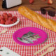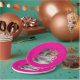 Ein orangefarbenes Kätzchen und ein graues Tischchen spielen um einen extravaganten Teacup herum.