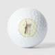 A golf ball with a cute image of a hand drawn tabby kitten. A tabby kitten can be recognized by a distinctive 'M' shaped marking on its forehead. It also has stripes near its eyes, on its cheeks, back, legs and tail. Original artwork by W.B.
