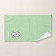Niedliche Tabby Kätzchen und Namenstext auf hellgrünem Badetuch-Set.
