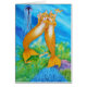 Zwei Meerjungfrautabellen schwimmen unter dem Meer mit den goldenen Fischen.