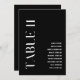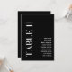 Dieses elegante Tischelf in Schwarz-Weiß mit elegantem, modernen Schriftart. Hochzeitstisch-Sitzkarten sind eine großartige Ergänzung zur Dekoration der Hochzeitsfeier. Die Gästeliste ist vollständig editierbar, sodass Sie einfach die Namen der Gäste ändern können, klicken Sie einfach auf 'Diese Vorlage personalisieren'. Tischnummer Karten von 1 bis 12 des gleichen Designs auch erhältlich.