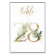 Schöne Tischnummer-Karte mit botanischem Motiv - eine Aquarellbild der grünen und goldenen Blätter. Tabelle 28. Bitte Karo alle verfügbaren Nummern