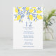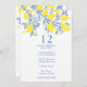 Beginnen Sie Ihren Hochzeitsempfang mit unserem Sitzplan für die Tischnummer der blauen und gelben Zitronenweiden. Diese lebendige Grafik hilft nicht nur Ihren Gästen, ihre Tische leicht zu finden, sondern ergänzt auch Ihre Einrichtung um eine erfrischende mediterrane Touch. Das blaue und gelbe Weindesign strahlt ein lebendiges und einladendes Ambiente aus, das Ihre Sitzgelegenheiten zu einer Brise macht und Ihre Feier noch unvergesslicher macht.
