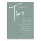 Einfache und schicke Tischnummer-Karten in Eukalyptus Grün und Weiß geben bei Ihrer Hochzeit oder Veranstaltung eine elegante Note. Das Design enthält "Table [number]" in einem spannenden Mix aus klassischer Serif und handgeschriebenem Skriptsatz, darunter einzelne Gastnamen. Design wiederholt sich auf beiden Seiten. Einzelne nummerierte Karten werden separat verkauft; bestellen Sie jede Tischnummer einzeln aus unserer Sammlung.