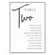 Einfache und schicke Tischnummer-Karten in Schwarz und Weiß machen bei Ihrer Hochzeit oder Veranstaltung ein elegantes Statement. Das Design enthält "Table [number]" in einem spannenden Mix aus klassischer Serif und handgeschriebenem Skriptsatz, darunter einzelne Gastnamen. Design wiederholt sich auf beiden Seiten. Einzelne nummerierte Karten werden separat verkauft; bestellen Sie jede Tischnummer einzeln aus unserer Sammlung.