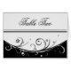 Eine elegante, klassische Schwarzweiss-Tabellensitzplatzkarte. Kundengerecht. Es gibt Raum nach innen, damit Sie die Namen von denen hinzufügen, die Sie jedem Tabelle zugewiesen haben.