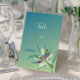 Nennen Sie Ihre Empfang-Tische mit einer Empfang-Tischkarte mit Schmuck. Das Design der Tischkarte bietet eine farbenfrohe Libelle, die auf Blumenbildern mit aquamarinem Farbverlauf ruht. Mit diesem Design sind auch weitere Hochzeitswaren erhältlich. Brauchen Sie Hilfe bei der Anpassung? Bitte kontaktieren Sie mich, und ich werde den Wortlaut und die Details ausarbeiten, um dieses Design zu Ihrer Zufriedenheit zu gestalten.
