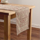 Der Tischläufer zeigt ein in Afrika inspiriertes Muster-Design in Chili Rot gegen eine warme Sandfarbe.