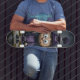 Observó a los skaters y, con un golpe suave de su bastón, dejó grabada su propia figura en una tabla.