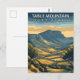 Capture the majestic beauty of South Africa with this stunning Table Mountain travel postcard! This captivating illustrated design features the iconic flat-topped Table Mountain, dominating the vibrant landscape of Cape Town. The stylized art beautifully showcases the rolling valleys and lush scenery leading up to this incredible natural wonder.