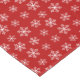 Ein Muster weißer Schneeflocken auf einem roten Hintergrund.