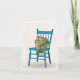 Tabby Katze in Topf Pflanze auf Retro-Holz türkis Stuhl.