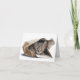 Aquarellbilder einer niedlichen grauen Tabbattacke in einem braunen Papierbeutel für leere Notizkarte.