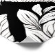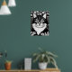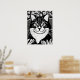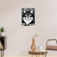 Poster in einem Schwarz-Weiß-Portrait einer Katze mit einem großen Tisch, in einem Garten umgeben von Blume und Blättern.