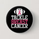 Bekämpfen Sie den Brustkrebs-Knopf, um das Bewusstsein zu schärfen und diejenigen zu unterstützen, die gekämpft haben und die noch kämpfen. Das Design zeichnet sich durch ein rosa Band auf einem Fußball und eine einfache Typografie aus. Design kann so angepasst werden, dass Text, Datum oder Logo hinzugefügt werden, um Ihren eigenen personalisierten Button zu erstellen. © TheDesignHippo