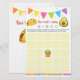 Taco bout a Baby Shower Bingo Game - so fun for the guests and mom-to-be. Light yellow squares with a cute taco and avacodo with "talik about a baby" for a fiesta theme baby shower.