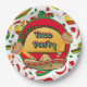 Ein Rundpapier für Taco-Party in einem farbenfrohen mexikanischen Thema mit Taco-Zentrum