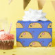 Dieses niedliche Taco-Rattenmuster platzt mit Käse, Salat und Tomaten auf blauem Hintergrund.