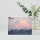 Travel Postcard mit landschaftlichem Foto-Bild von schneebedecktem Berg Rainier mit rosafarbenem Alpenglow und Blick auf Tacoma, Washington. Wählen Sie aus einer matten oder glänzenden Stilkarte.