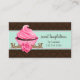 © Persönlichkeit des öffentlichen Lebens-Entwürfe 2013. Unser Couturekuchenbäckereigeschäfts-Kartenentwurf hat einen eleganten kleinen Kuchen, blüht und eine rosa Rose. Eine perfekte Geschäftskarte für ein Bäckereigeschäft oder Ereignis-Cateringgeschäft wie Nachtischtabellen. Personifizieren Sie diese Kuchenbäckerei-Visitenkarte mit Ihren Informationen. Farben sind aquamarin schokoladenbraun, rosa und.