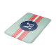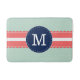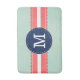 Tadelloses grünes Tupfenmuster mit korallenroten rosa Details und runde Fahne des Marineblaus in der Mitte für kundenspezifisches Monogramm.
