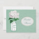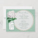 Elegante tadellose grüne Brautpartyeinladungen mit einer niedlichen Vintagen Blumenillustration des weißen und grünen Glasball-Maurerglases und des hübschen weißen Hydrangea auf einem stilvollen heißen und trendy tadellosen grünen Shabby Chic druckten tadellosen grünen Leinwandhintergrund. Auf der Rückseite von lädt ist bezaubernde weiße Druckperlen und Spitzematte mit grünem Text ein, damit Sie mit Ihren Ereignisdetails personifizieren. Nobel, modisch, modern, modern lädt perfektes für Frühling, Sommer, Fall/Herbst und Winterduschen ein. Neue HochzeitsfarbTrends! Ich habe zusammenpassende Produkte in meinem Speicher. Aller Text kann leicht besonders angefertigt werden, um Ihren Bedarf zu erfüllen und Sie können die Schriftartart, -farbe und -größe des Schriftartes ändern, wenn Sie wünschen. Wenn Sie irgendeine Unterstützung benötigen, die Ihr Produkt in Verbindung treten besonders anfertigt mit mir bitte, durch meinen Speicher und ich bin glücklich zu helfen. Perlenmatte durch ©Hazel Kinvig-Paul www.design-a-dream.co.