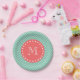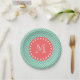 Tadelloses grünes Zickzack korallenrotes Monogramm Pappteller