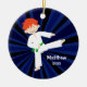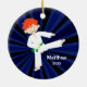 Personifizieren Sie leicht dieses scherzt Kampfkünste Weihnachtsverzierung. Eine niedliche rote behaarte Jungenillustration, eine weiße Uniform und einen grünen Gurt tragend. Vervollkommnen Sie für jeden möglichen wenigen Karate- oder Taekwondo-Studenten. BEVOR Ihr Auftrag vergeben wird -- Treten Sie mit uns für FREIE FARBE ÄNDERN in Verbindung (Gurtfarbe, Haarfarbe, Hintergrundfarbe, etc.)
