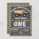 Diese 1. Geburtstagseinladung der Tafel kennzeichnet einen gelben Bau-LKW, Fahne, einige Teiler und Kreide wie Schriftart. Der Entwurf umfaßt auch eine diagonale gestreifte Grenze. Der LKW ist etwas strukturiert und gemacht, um wie eine Kreide auszusehen, die auf einem gescannten Tafelhintergrund zeichnet. Ich wollte, um die Größe der Speicherbau-Tafeleinladungen zu erhöhen, Speicherbesuchern mehr Wahlen zu geben. Diese 1. Geburtstagseinladung des Baus ist bereit, personalisiert zu sein und ist für jemand passend, das wie Tafelgeburtstagseinladungen.
